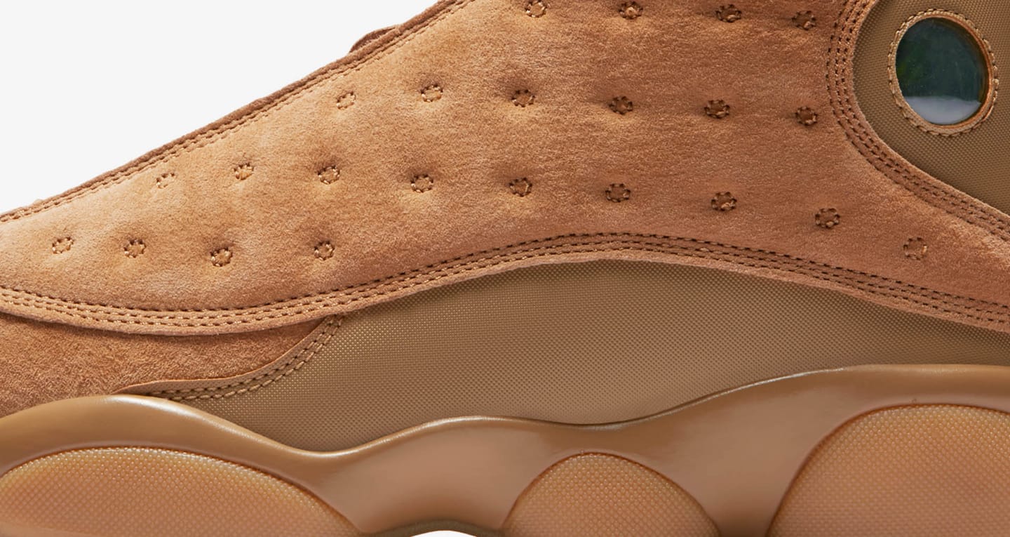 This pair, which debuted during the 2017 Holiday footwear collection from Jordan Brand comes in an all-new elemental gold, baroque brown and gum yellow colorway This Air Jordan 13 Retro is known as the "Wheat" edition Also known as the 'Golden Harvest,' this Air Jordan 13 Retro gets an all-over tan treatment